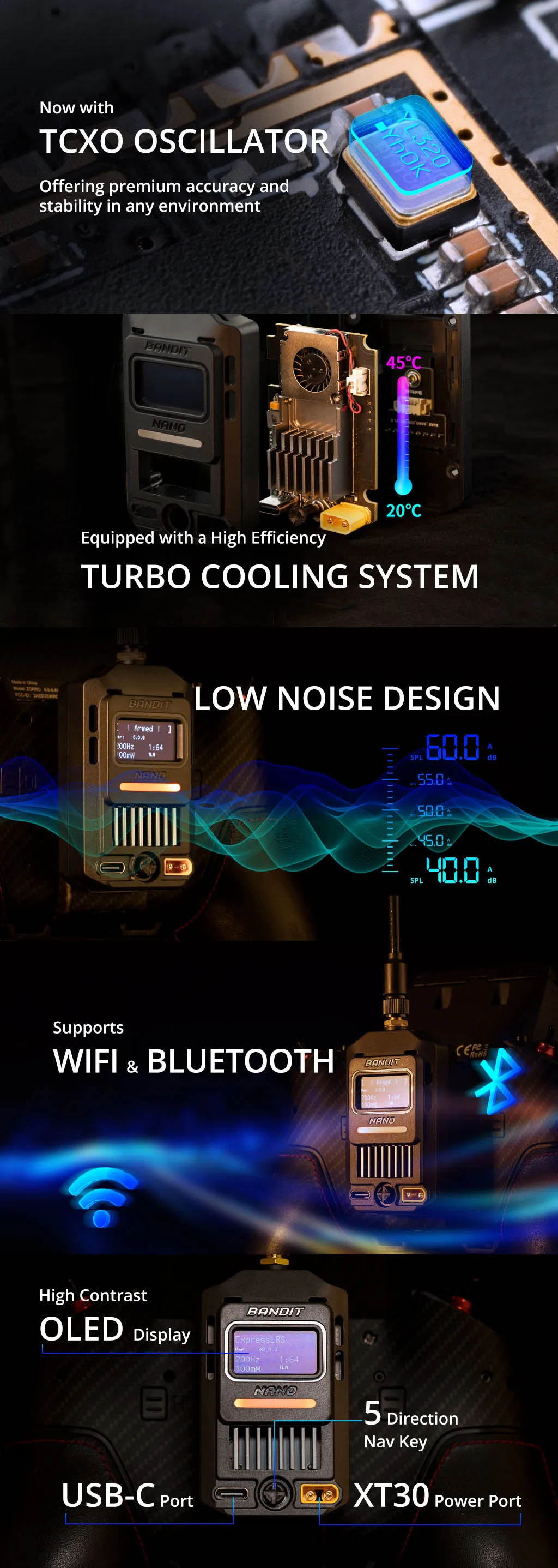 Завдяки інноваційній системі конвекційного охолодження та вбудованому турбовентилятору модуль Bandit Nano ExpressLRS забезпечує оптимальний контроль температури та працює з мінімальним шумом. Форм-фактор Bandit Nano готовий до роботи з нашими радіоприймачами Zorro, Pocket, MT12 та іншими з модульним відсіком «Nano».